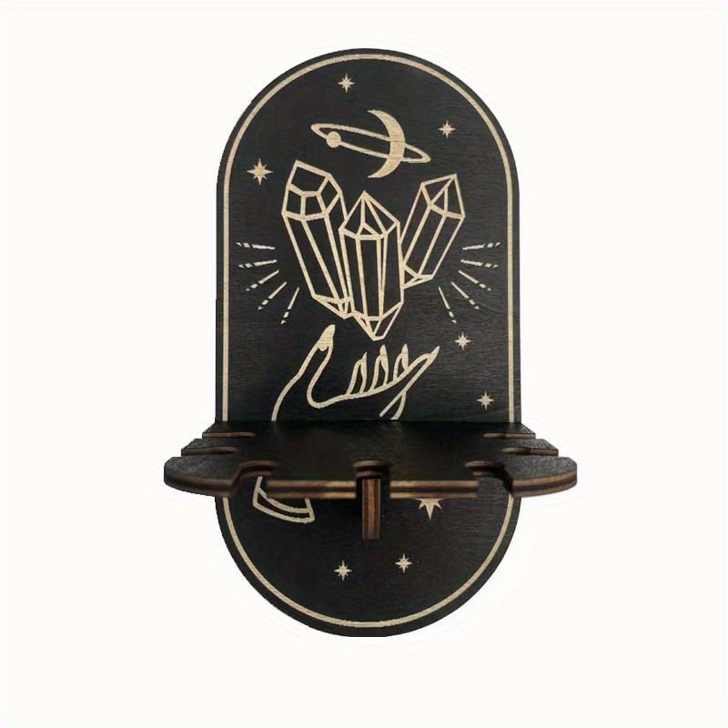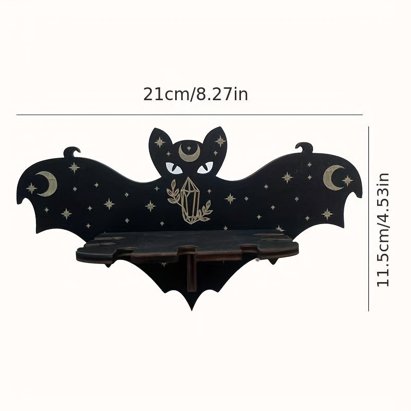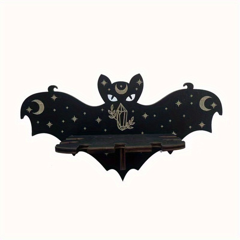 1pc Rustic Wooden Bat Crystal Floating Shelf - Wall Hanging Decorative Shelf Rack for Home, Living Room, Bedroom - Perfect for Halloween, Thanksgiving